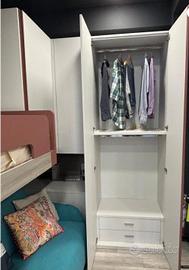 Misure: larghezza lato divano 330 cm x lato armadio 2 ante L 195 cm per un altezza totale di cm. 260. Meccanismo superiore abbattibile a discesa per un rifacimento super comodo del letto.