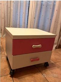 Camera completa e componibile: 1. ARMADIO: - parete a sinistra della foto 1 (240*259cm*59cm) - parete di fronte nella foto 1 (255,5*259*59) 2. CASSETTIERA CON ROTELLE E TRE CASSETTI (50*51,5*59) STRUTTURA LIBRERIA CON TRE MENSOLE (OGNI MENSOLA 150*3,5*28,5) + SEDIA 3. LETTO (90*200) - i letti sono 2, comprese le testiere 4. COMODINO CON ROTELLE E DUE CASSETTI ( 50*35,5*42,5) LA SCRIVANIA E’ IN REGALO perché personalizzata alla camera (180*74,5*58,5) Piccolissimi segni d'usura su un cassetto della cassettiera della scrivania e un altro sulla maniglia del cassetto del comodino. Nel prezzo è compreso lo smontaggio dell'intera camera.