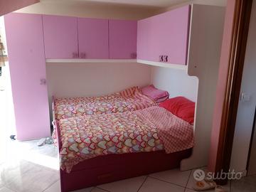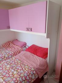 Cameretta angolare con 3 letti (il terzo è sfilabile da sotto a quello all' angolo) e l altro contenitore con cassetti. Buono stato - misure come in foto .