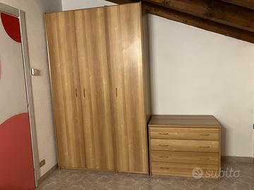 Armadio in legno altezza 225cm, larghezza 137cm. Possibilità di aggiungere altre mensole