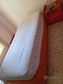 vendo cameretta arancione in buone condizioni, con due basi per letti e un materasso e un comodino. il tutto a soli 200 euro trattabili. smontaggio da fare autonomamente. contattatemi per qualsiasi informazione.