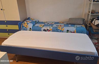 vendo cameretta composta da un armadietto a 2 ante con cassettiera +lettino con ulteriore lettino sottostante estraibile all'occorrenza ottime condizioni, ritirare a cura dell'acquirente zona Pati Fiscali Roma. prezzo 150 euro