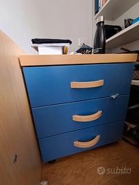 4) Cassettiera (da sottoscrivania o comodino) con 3 cassetti e 4 ruote prof 58 cm, larghezza 50 cm, h 58 cm