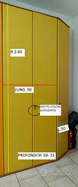 Armadio capiente: H 260 cm, L 90 cm, profondità variabile (58-31 cm).