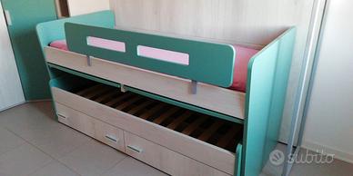 Vendesi cameretta Arredissima anno 2019 con letto a castello,secondo estraibile con scrivanie incorporate. Cabina armadio e ponte. Colori: grigio dorian, verde oceano e rovere gesso.