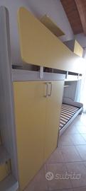 Cameretta Arredissima, colore giallo pastello, letto a castello, 2 armadi spaziosi, 2 cassetti sotto il letto e scala con vani. Quasi nuova.