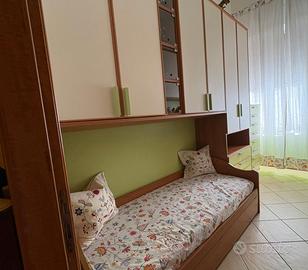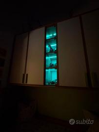 Vendesi cameretta artigianale su misura, in ottime condizioni, con teche illuminate a LED che donano un tocco moderno ed elegante.
