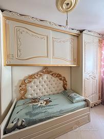 Cameretta realizzata tutta nei minimi dettagli dal falegname, pitturata a mano molto comoda colori chiari, letto barocco.. misura di altezza 2.70 e l’arghezza 4.20 profondità 58. Maniglie originali con Swarovski. No perditempo solo interessati.