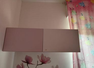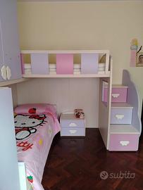 Camera bimba composta da due letti (+ un materasso ), armadio basso (h 130cm circa), armadio pensile alto (h 130cm ca), comodino con 2 cassetti, scala con gradini-contenitore, pensile 2 ante.