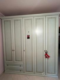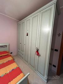 Cameretta verde acqua, composta da armadio di 5 ante, due lettini, un comodino. Prezzo trattabile, possibilità di vendita anche singolarmente. smontaggio e trasporto a carico dell'acquirente