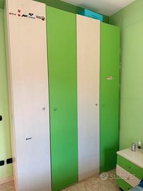Cameretta con armadio sei ante srivania comodino cassettiera e letto soppalco con scala contenitore