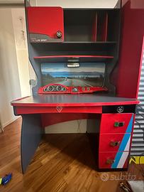 Vendo cameretta completa di : Letto modello GTS auto sportiva Armadio Scrivania con libreria N 2 mensole Cassettiera modello distributore benzina Lampadario semaforo Tappeto