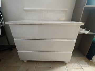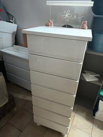 Vendo intera cameretta composta da culla, cassettiera, settimino e mensola della Azur fiocco fiore tutto laccato bianco lucido e in buone condizioni.