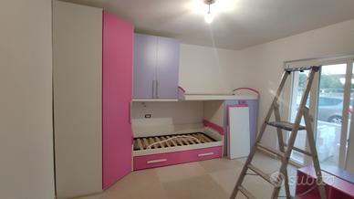 vendiamo a malincuore questa stupenda cameretta con letto a castello, 1 estraibile e 1 fisso quindi in totale 3. vendiamo per cambio disposizione e colore camera perché c'è un fratellino.