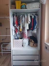 vendo cameretta bambina composta da ; Armadio grande con ante scorrevoli a specchio, capiente e moderno, con specchi a tutta altezza che rendono la stanza più luminosa larghezza 63 altezza 266 lunghezza 196 💰 Prezzo: 180€ 🛏️ Letto una piazza e mezza con materasso Struttura in metallo bianco, resistente e comoda 118 larghezza 201 lunghezza 100 altezza (testata) 64 altezza (piedi) 💰 Prezzo: 90€ 📚 Libreria + mobile contenitore Pratica e spaziosa, perfetta per libri, giochi e materiale scolastico larghezza 107 altezza 187 profondita 34 💰 Prezzo: 70€ 🔥 PREZZO IN BLOCCO PER TUTTO: 300€ con omaggio 2 completi lenzuola, materasso e 2 cuscini. ✔️ Tutti i mobili sono in buone condizioni ✔️ Ideali per cameretta bambino/a ✔️ Smontaggio carico acquirente. I mobili si trovano in un appartamento sito al secondo piano. 🚀 Disponibili subito – precedenza a chi prende tutto in blocco.
