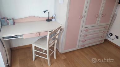 Vendo cameretta usata da bambina in ottime condizioni con letto con rete a doghe più materasso incluso,armadio a 3 ante,scrivania,comodino e 2 mensole