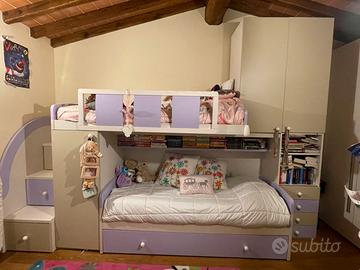 Composizione 3 Postazioni Letto. Colore: Betulla E Malva/Visone. Dimensioni 350x259,2x58/92. Tenuta molto bene. Aquistata 5 anni fa, in ottime condizioni. Si sostituisce in quanto la ragazza compie 14 anni. Prezzo trattabile