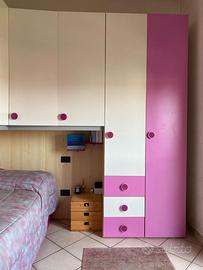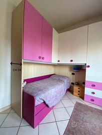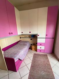 Cameretta bambina ad angolo dimensioni indicate in foto. Si vende comprensiva di scrivania e sedia, sono escluse doghe e materassi. Già smontata e pronta per il ritiro a carico acquirente. Modalità di ritiro da concordare tra le parti. Prezzo Trattabile.
