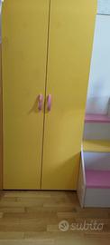ameretta con letti a castello scorrevoli su ruote. Il letto superiore è raggiungibile tramite scala con cassettoni contenitivi. Oltre a questo è composta da: