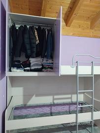 Cameretta Larghezza 305cm x Profondità 88cm x h 245cm composta da n. 3 letti. 3 materassi inclusi. completa di mobile Libreria singolo misure circa 50x60x245. Perfetta, nessun graffio.