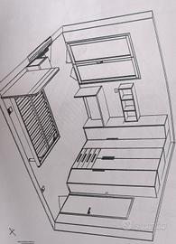 cameretta completa con armadio angolare, letto 1 piazza e 1/2, scrivania grande e comodino. possibilità di acquistare anche solo l'armadi(prezzo da concordare) escluso materasso anno di acquisto 2022