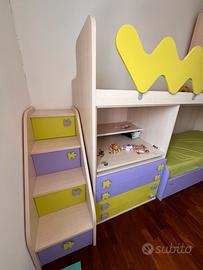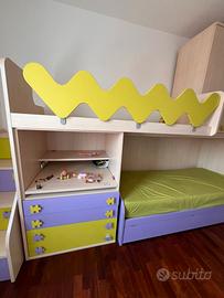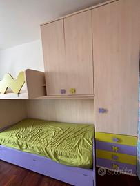 Comprende 2 letti a castello più un altro letto estraibile , 2 cassettiere, 2 armadi
