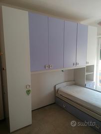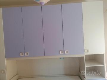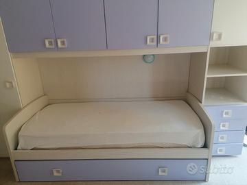 Vendo cameretta modello Alfa mondo convenienza. Ponte sinistra 6 ante battenti 4 cassetti ( 1+4+1) 2 letti effetto nuvola color malva con materassi inclusi. Misure cm 300x92x259. Ritiro e smontaggio dell'acquirente.