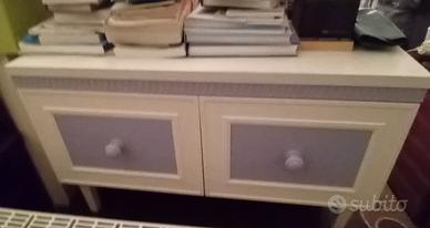 lettino) e due ante lunghe con sotto due cassetti, disposte alla fine del lettino sulla destra.lnoltre ha un comodino con due cassetti.
