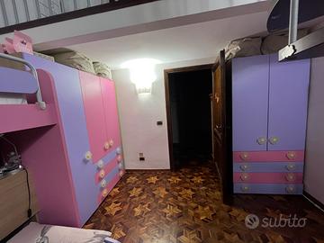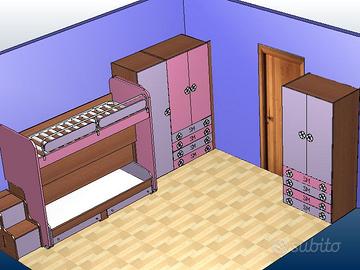 Vendo bellissima cameretta con due letti apribili acquistata presso il negozio Mondocamerette al prezzo di 3000 euro. Il letto superiore scorre in avanti permettendo di rifarlo con facilità. Inoltre tra i due letti è presente un ampio vano contenitore per riporre piumini e coperte. Smontaggio e trasporto a carico dell'acquirente.