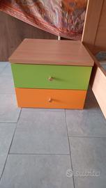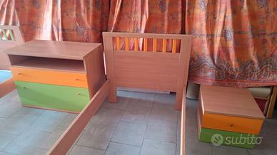 CAMERETTA BAMBINI COLORATA VERDE E ARANCIONE 2 LETTINI (90 x 200 cm - Altezza 85 cm) - Per RETE 80 x 190 cm NO RETI - NO MATERASSI 2 COMODINI (45 x 45 cm - Altezza 35 cm) - Con 2 CASSETTI 1 COMO' (90 x 46 cm - Altezza 70 cm) - Con 1 CASSETTO + 1 CASSETTONE SOLO RITIRO A MANO