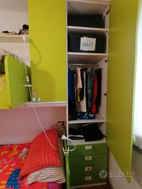 Cameretta bambini 2 letti a castello con armadio. Produttore: Colombini.