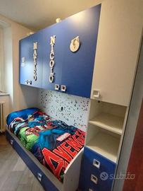Cameretta bambini a ponte con due letti