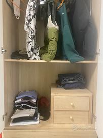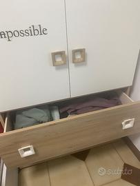 Causa svuota casa per trasloco Cameretta composta da due armadi identici( con doppio cassettone e cassettiera interna ), letto singolo con rete e materasso comodino tutto in ottime condizioni , adesivi completamente rimovibili Smontaggio e ritiro a carico dell’acquirente Prezzo trattabile