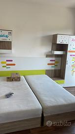 Cameretta usata poco e in buono stato. Compresa di due letti contenitore, due armadi, comodini e un ulteriore mobiletto capiente. Possibilità di modificare la disposizione dei letti spostando il comodino cosi da avere, volebdo, il letto matrimoniale. Tutto gia smontato e pronta per il ritiro (a carico dell’acquirente).