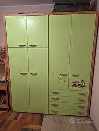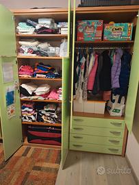 Vendo cameretta in ottimo stato completa di armadio con cassetti e scaffali, letto, comodino e mobile multiuso con ruote. Ritiro al domicilio
