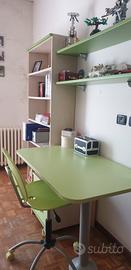 cameretta bambini composta da 2 letti a soppalco con gradoni a cassetti armadio 4 ante altezza 2.59 m. 2 ante ridotte. 1 comodino a cassetti. scrivania con poltroncina a rotelle. una cassettiera da scrivania. libreria e due mensole.
