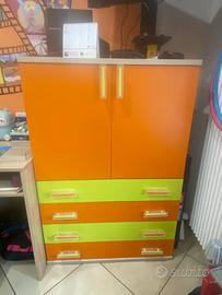 Vendita cameretta completa. Usata ma in buono stato. Ritiro a mano, trasporto e smontaggio a carico dell’acquirente. Nell’angolo è stato fatto il taglio per il pilastro