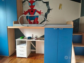 Cameretta bambini con letto a soppalco comprensivo di materasso,tre spaziosi armadi+ uno pensile ad una anta