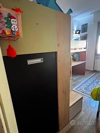 Cameretta bambini 2 letti sopra uno con pedana richiudile, sotto un letto c’è una tana/armadio o comunque porta giochi con 3 ripiani molto capienti e spaziosi, sotto l’altro letto scrivania molto grande con mensole porta libri, sulle scale 2 cassetti capienti e sbarra del letto apribile tramite ganci con sicurezze apposite , nella tana luce con sensore e luce sulle scale sempre con sensore di passaggio . misure nelle foto è di un mobilificio quindi è legno vero e proprio, no Ikea o mondo convenienza . Marca Doimo City Line prezzo poco trattabile