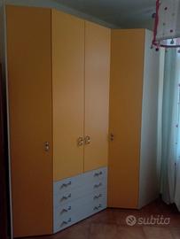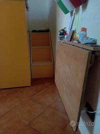 Cameretta in buono stato con 2 letti, armadio ad angolo, 2 bussolotti profondi e capienti, libreria, vano scalette a cassettoni, 2 profondi vani a cassettone a fianco del letto superiore, varie mensole.