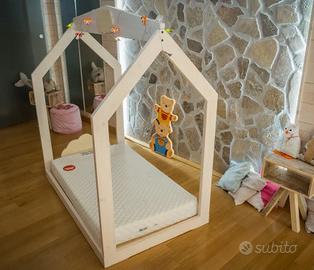 Vendo cameretta da bambina/o composta dai seguenti componenti: - Lettino Montessori Home L'arte dei sogni (- Lunghezza 160 cm, altezza 144,5 cm e profondità 80 cm) (260€) - Scrivalibreria con sediolina L'arte dei sogni (150€) - Cassettiera Maison Du Munde (110€) - Comodino Maison Du Munde (60€) Trovate sotto la descrizione del lettino e della scrivalibreria Vendo anche singolarmente Descrizione Lettino Montessori Ogni lettino montessoriano è realizzato a mano con legno di abete massello di altissima qualità lavorato in maniera tale da rendere la struttura stabile e confortevole. Tutte le superfici sono lisce e senza nodi affinché non ci siano schegge che potrebbero ferire il bambino. La rete è stata creata con apposite feritoie in modo da aumentare la flessibilità senza però ridurre la robustezza. Tutti i nostri lettini sono stati testati con un peso di 80 kg. Descrizione Scrivalibreria con sediolina Una scrivania/libreria 2 in 1 pensata per le attività del tuo bambino. Realizzata in legno multistrato di pioppo è il complemento d'arredo ideale per ogni tipologia di cameretta. E' disponibile in due varianti di colore: bianca e color legno naturale. La finitura della scrivalibreria bianca non è laccata, nonostante il materiale di ottima qualità, lo stesso non si presta per essere laccato quindi il colore finale è un bianco venato. Come tutto l'arredo montessoriano anche la scrivalibreria è a misura di bambino in quanto può in autonomia riporre i propri libri e i propri giocattoli. E' dotata di un banco estraibile in modo da permettergli di dedicarsi alle proprie attività creative, inoltre è pensata per ricreare nella propria casa un ambiente didattico indispensabile per ogni bambino. Ogni scrivalibreria è dotata di una graziosa sediolina