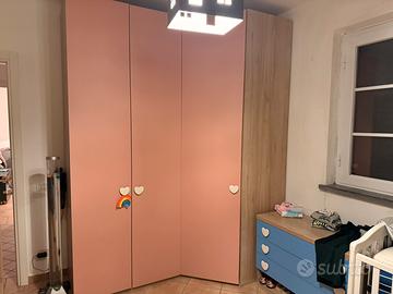 Ottima cameretta tre letti Mondo convenienza usata pochissimo. Si cimpone di scaletta con cassetti per accedere al letto superiore, di due lettinnel vano inferiore di cui uno estraibile. Fantastica cabina armadio angolare. Cassettiera capiente con quattro cassetti ed a parte di un inserto a muro porta oggetti, libri ed altro. La larghezza del vano letto e’ di 260 cm. ed alto sul punto piu alto 173 cm. L’altezza della cabina angolare è di 258cm. NO PERDITEMPO