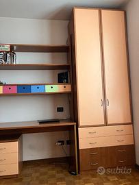 cameretta in perfetto stato due letti scorrevoli bassi compresi di due reti a doghe e materassi - inclusa scrivania, libreria e due armadi