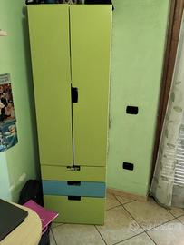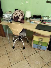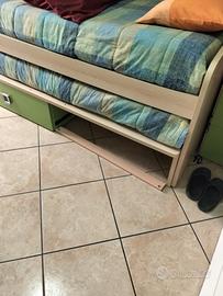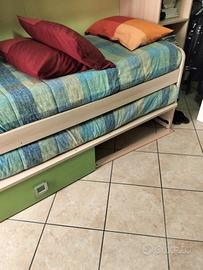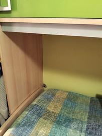 vendo cameretta bimbi più scrivania con sedia più armadio piccolo a parte più due materassi come da foto potete vedere che al letto di sotto e rotto il cassettone se interessati si prega anke di organizzarvi per venirla a prendere