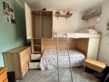 Vendo cameretta con letto a castello per due bambini. Tenuta molto bene, vendo senza materassi ma con la rete di eminflex , il comodino e la scaletta è compresa. Prezzo leggermente trattabile.