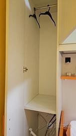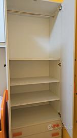 Lato destro armadio doppia anta +4 cassetti. Lato sx armadio anta singola