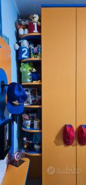 la cameretta è composta da armadio da 6 ante e 4 casetti e 5 mensole letto a ponte con scala laterale a cassettoni e corridoio sempre contenitore scrivania 2 cassettiere mobile vetrina mobile arredo 6 mensoline