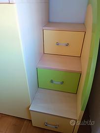 Cameretta completa in vendita 💚💛 Vendo cameretta a ponte in buono stato, ideale per bambini/ragazzi. La sostituiamo solo perché stiamo acquistando una nuova camera per nostra figlia. Composizione: Struttura a ponte con armadio e doppio letto 2 cassetti contenitori estraibili sotto il letto inferiore Scala laterale per accesso al letto superiore con 3 cassetti contenitori Scrivania coordinata con cassettiera: cameretta: L 357 x P 100 x H 230 cm scrivania: L 220 x P 61 x H 75 cm Compresi 2 materassi (superiore + inferiore) Condizioni generali: buone / ottime, pochi segni d’uso. 💶 Prezzo: 290 € 🚚 Trasporto a carico dell’acquirente Per altre foto o dettagli scrivetemi in privato.