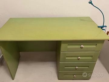 Cameretta per bambini verde chiaro realizzata a mano da falegname in legno. In perfette condizioni, è composta da comodino, scrivania, mobile scarpiera (non ho foto) e armadio a due ante battenti. Chi desidera acquistarla dovrà venire a ritirarla.