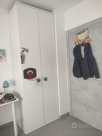 Letto a castello con terzo letto sotto estraibile e armadio, nessuna parte danneggiata. Armadio alto 260 cm profondo 57, un ripiano all'interno e due aste porta abiti.